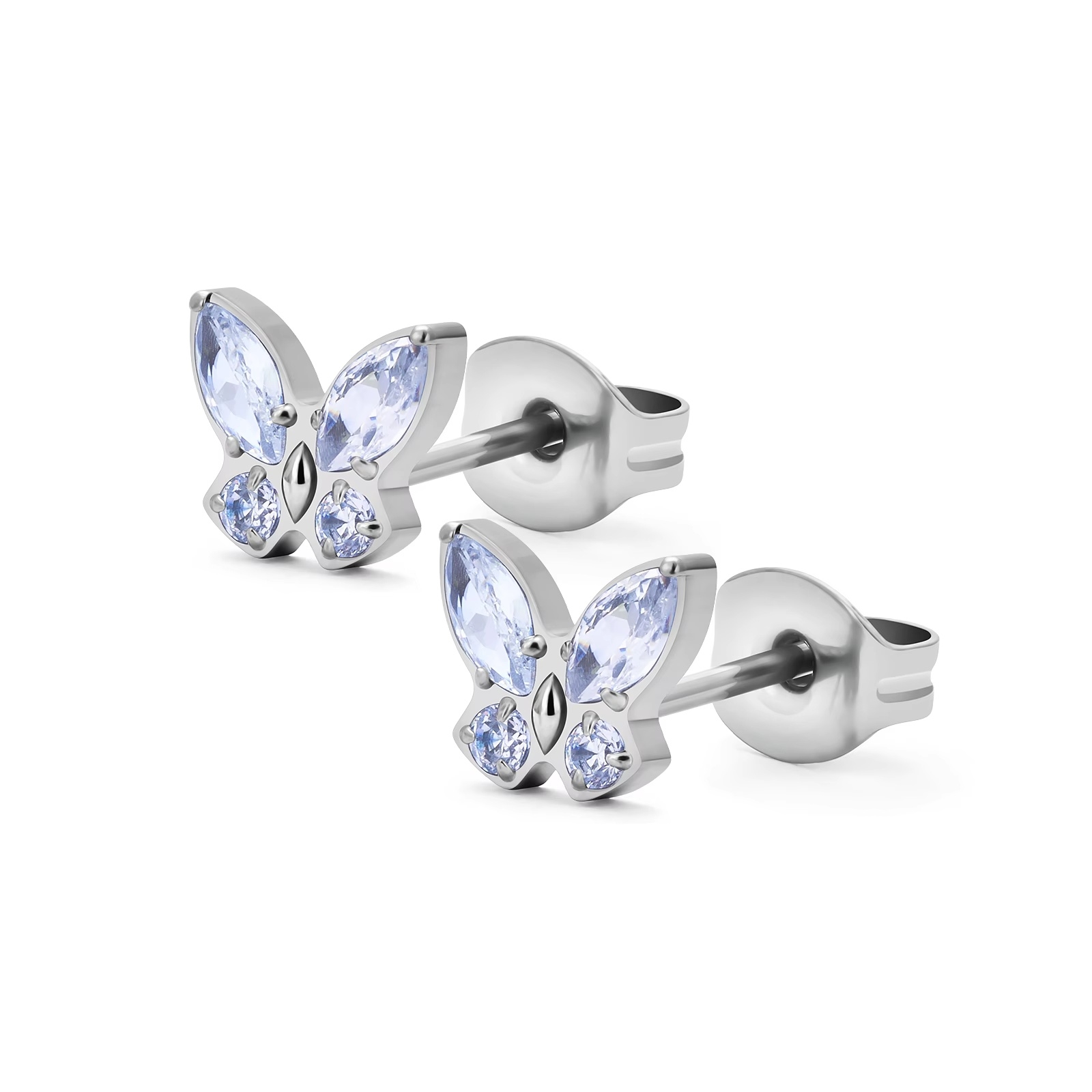 100% Titanium – Sommerfugle ørestikker i titanium m. sten