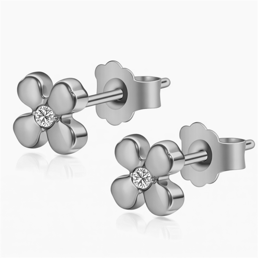 Disse fine ørestikker er fremstillet i 100 % titanium og er en del af Guldcenters eget mærke. Designet er inspireret af en enkel blomsterform med bløde, afrundede blade og en klar sten placeret diskret i midten. Det giver ørestikkerne et harmonisk og velafbalanceret udtryk, hvor detaljerne fremstår rene og tidløse.
