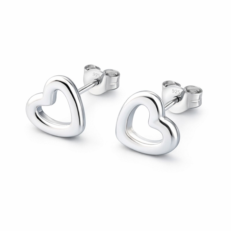 Disse hjerteørestikker har et enkelt og elegant udtryk og er udført i sterlingsølv. Det åbne hjerte giver et let og tidløst look, som passer perfekt til både hverdag og mere festlige anledninger. Den blanke sølvoverflade reflekterer lyset smukt og understreger det klassiske design uden brug af sten.