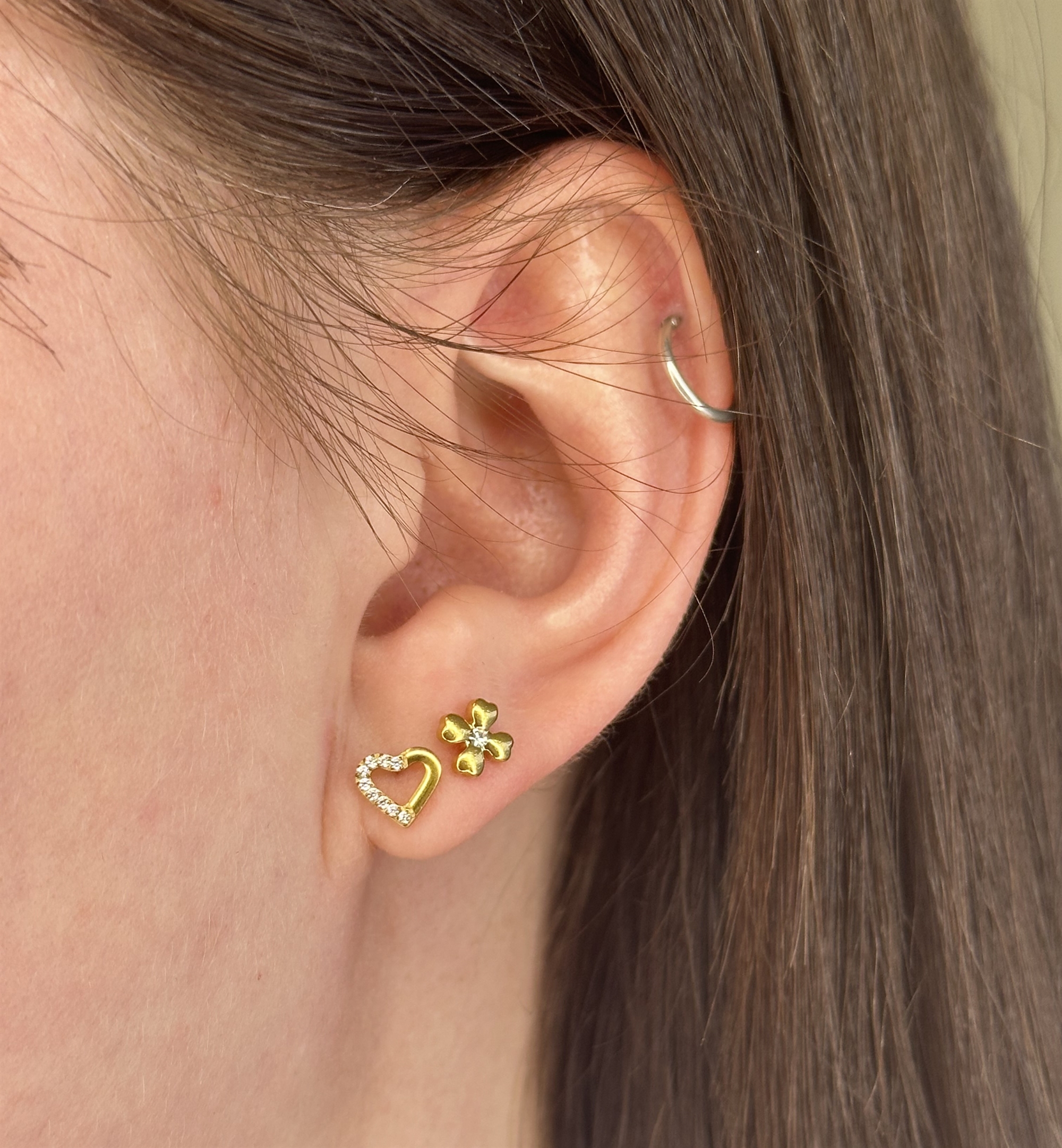 100% Titanium - Hjerte ørestikkere i forgyldt titanium