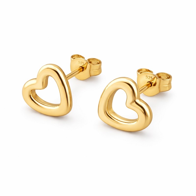 Disse hjerteørestikker har et enkelt og elegant udtryk og er udført i forgyldt sterlingsølv. Det åbne hjerte giver et let og feminint look, som passer perfekt til både hverdag og mere festlige anledninger. Den glatte, blanke overflade reflekterer lyset smukt og understreger det klassiske design uden brug af sten.