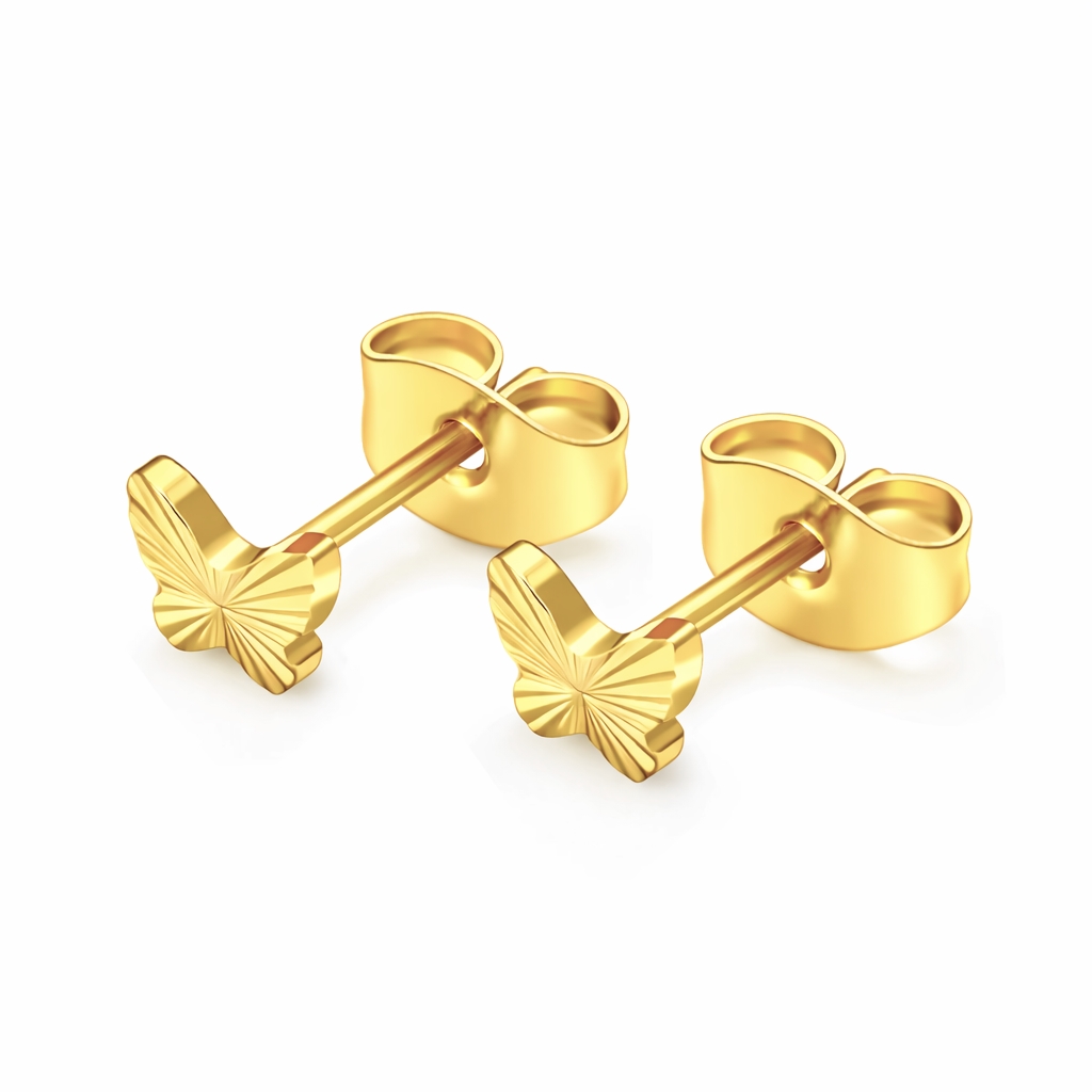 Disse sommerfugleørestikker er udført i titanium med 18 karat forgyldning og har et enkelt og stilrent udtryk. Sommerfuglemotivet er fremhævet med en fint facetslebet overflade, som giver et diskret spil i lyset uden brug af sten.