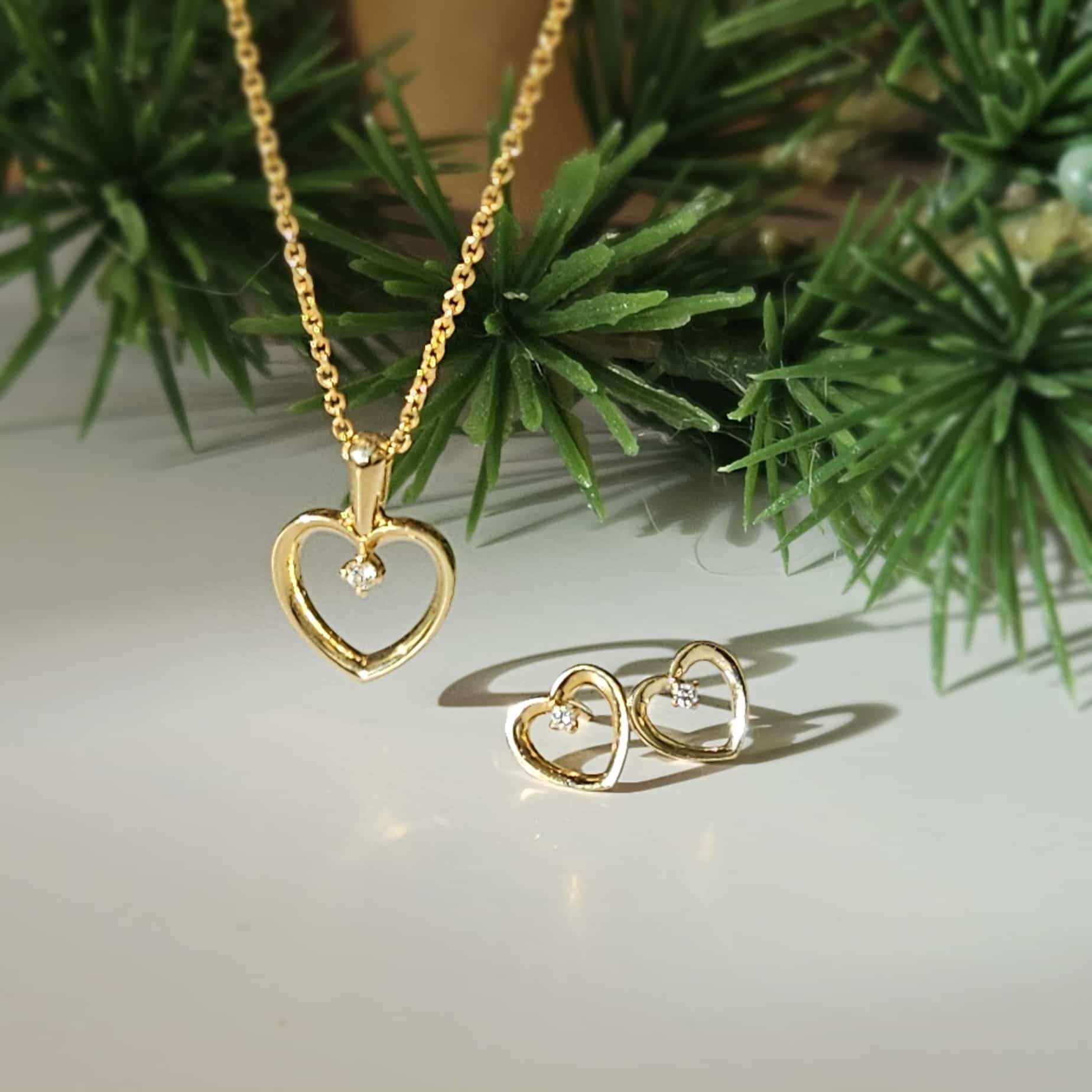 14 kt. Guld hjerte ørestikker med 2 x 0,01ct brillanter