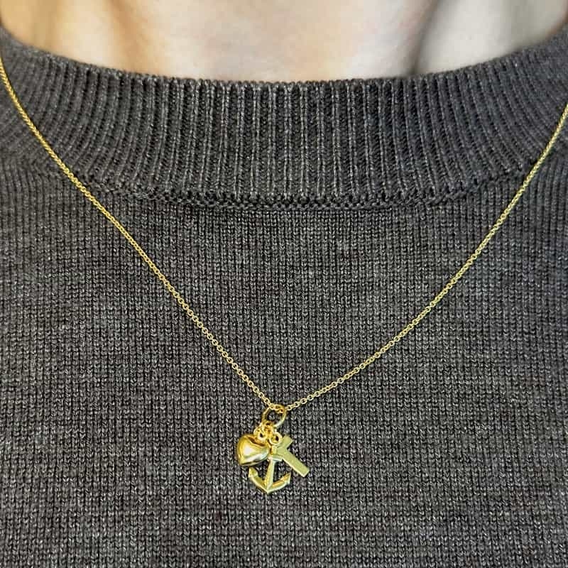 Tro, håb og kærlighed er stærke symboler, der ofte forbindes med livets værdier, relationer og nye begyndelser. Netop derfor er dette guldvedhæng et oplagt valg som personligt smykke, der kan bæres igen og igen – alene eller i kombination med andre halskæder for et moderne lag-på-lag look.