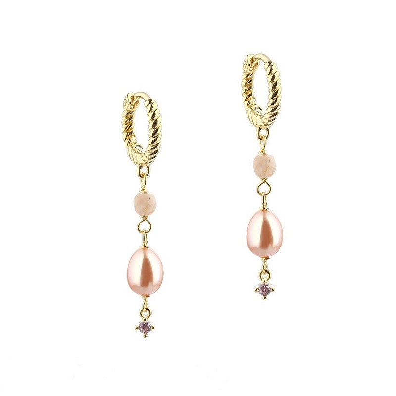 De rosa ferskvandsperler suppleres af varme sunstone sten og små rosa zirkonia, der tilsammen skaber et levende og harmonisk farvespil. De forskellige nuancer giver øreringene et elegant udtryk, hvor de fine detaljer virkelig kommer til sin ret. Resultatet er et par øreringe, der både føles lette og eksklusive på samme tid.