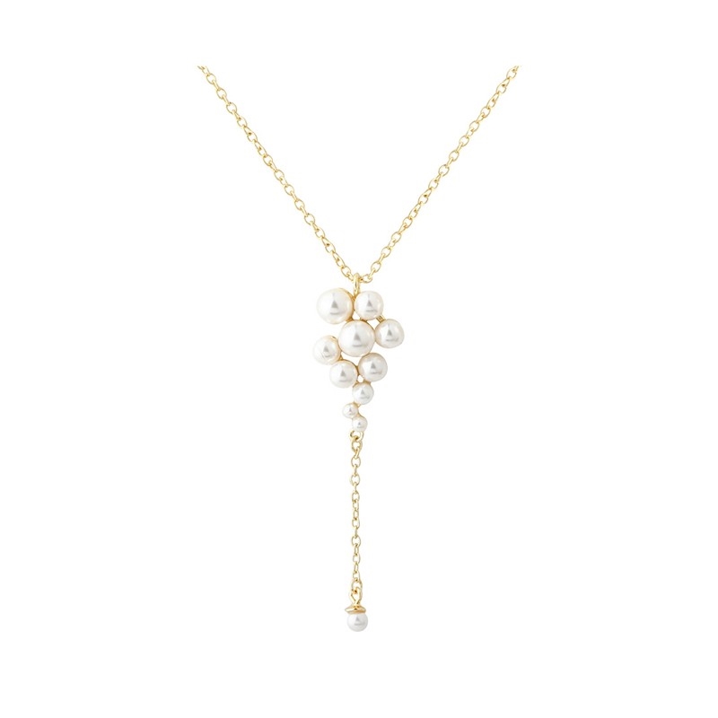 Lune Cluster halskæden fra Aqua Dulce er en elegant Y-halskæde med et blødt og feminint udtryk. I midten er små perler samlet i en fin klynge, som danner halskædens naturlige fokus og giver smykket et let og harmonisk udtryk.