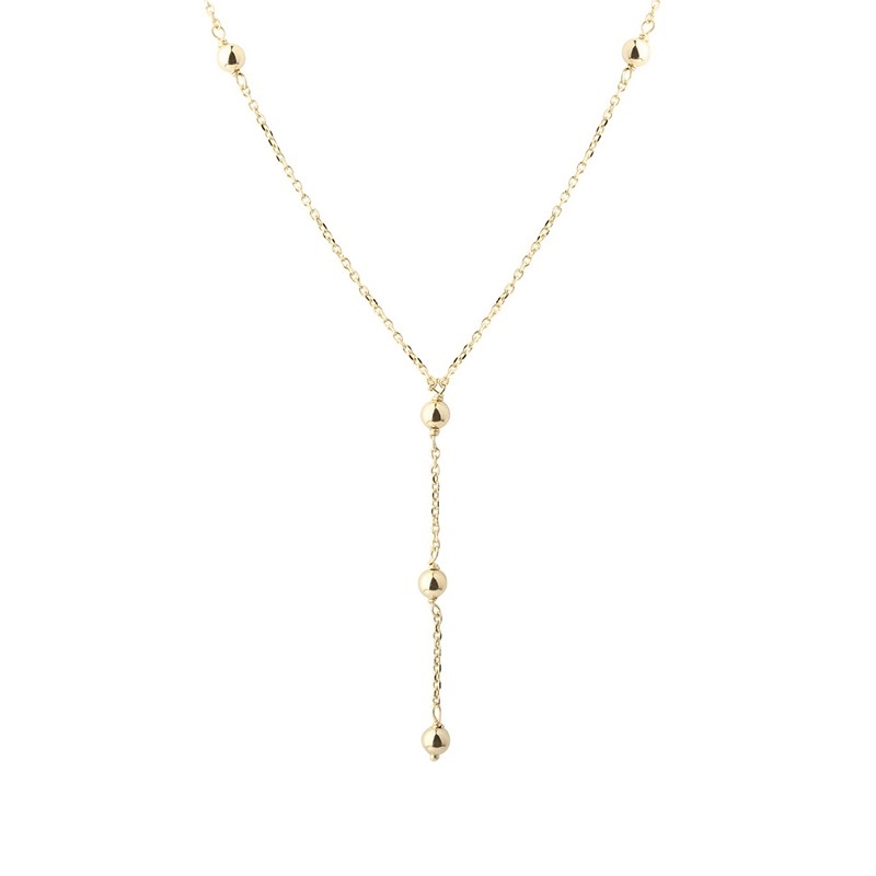 Lunella Ball Y-Necklace | Golden fra Aqua Dulce er en elegant halskæde, der kombinerer minimalistisk design med et feminint udtryk. Kæden er udført i 925 sterlingsølv belagt med 14 karat guld og prydet med små, blankpolerede kugler, der er fordelt langs kæden. Det karakteristiske Y-design fremhæver halsudskæringen og giver et raffineret og moderne look.