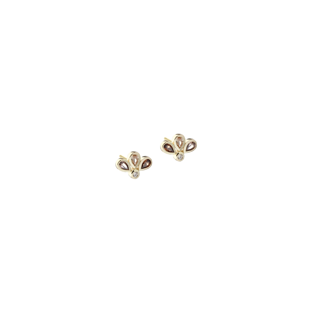 Nora ørestikkerne fra Aqua Dulce er et elegant og detaljerigt bud på et moderne hverdags-smykke. Ørestikkerne er fremstillet i forgyldt sølv og prydet med smukke brune zirkonia, som giver dem et varmt og sofistikeret skær. Det lille design er formet som en stiliseret, grafisk blomst med tre kronblade, hvilket skaber et feminint og kunstnerisk udtryk. Med en størrelse på 10 mm har ørestikkerne en perfekt balance mellem diskret charme og synlig elegance, så de både kan bæres til daglig og ved særlige lejligheder.