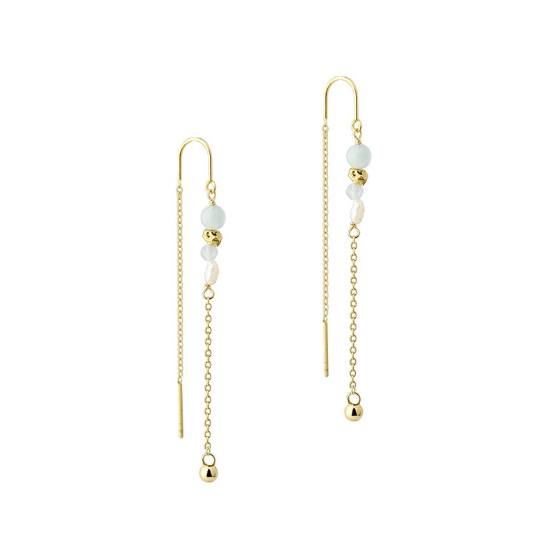De slanke kæder tilfører let bevægelse, mens perlerne giver smykket karakter uden at tage fokus. Designet føles luftigt og feminint og er nemt at style både til hverdag og til mere særlige anledninger. De fine detaljer giver øreringene et personligt udtryk, som passer smukt ind i en enkel smykkestil.