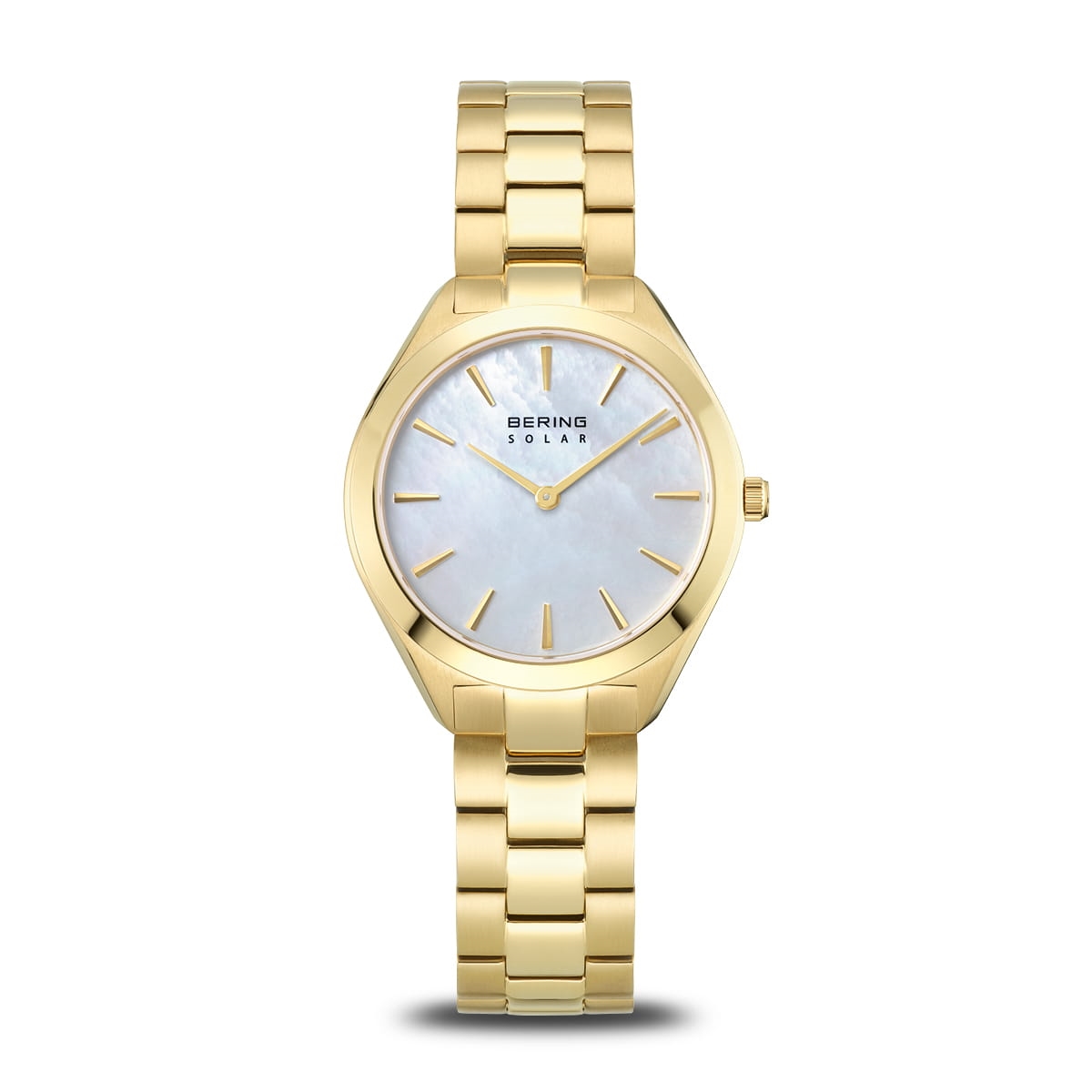 BERING dameur i guldtonet stål med perlemorsskive fra Solar-kollektionen.