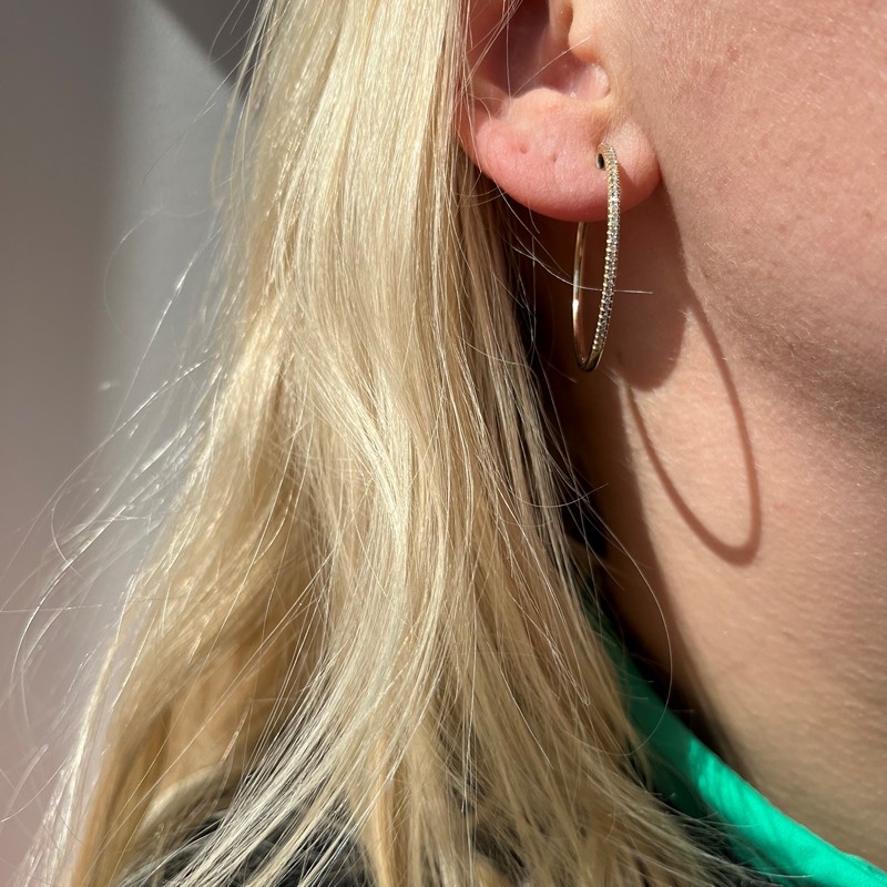 Dazzling - 14 kt. creoler 30 mm m. i alt 0,27 H-W/SI diamanterDazzling 14 kt. creoler 30 mm 0,27 H-W/SI diamanterDazzling 14 kt. creoler 30 mm 0,27 H-W/SI diamanter model