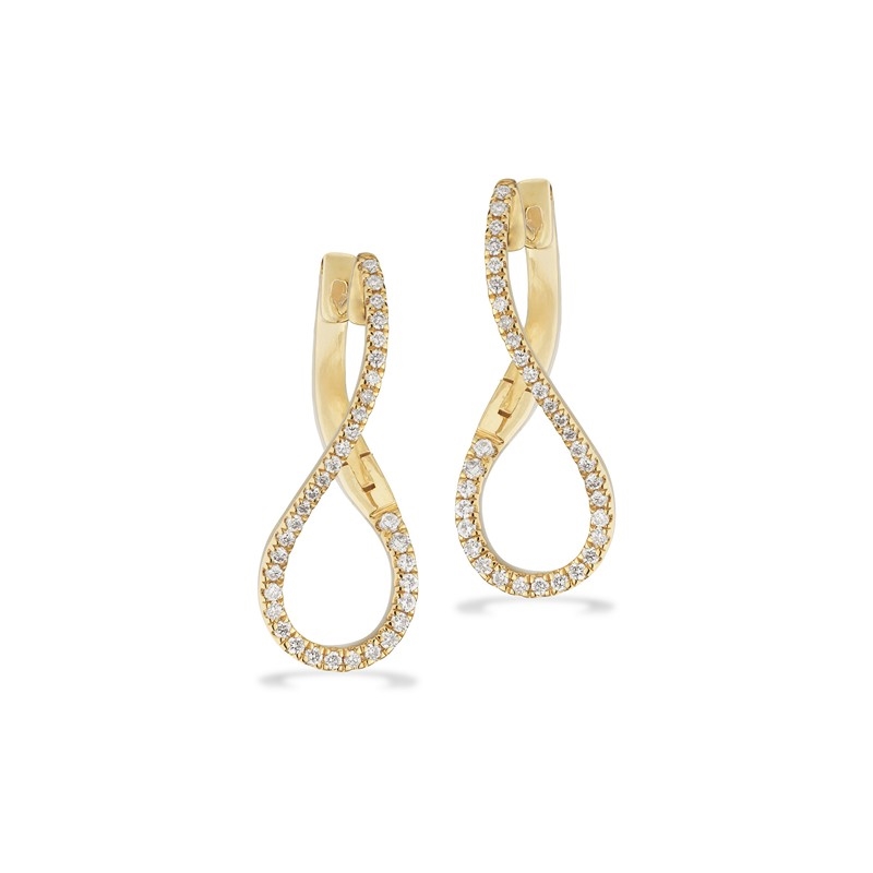 Disse smukke Dazzling creoler i 14 karat guld er et elegant valg til dig, der ønsker et klassisk smykke med et diskret strejf af luksus. Øreringene er designet som en elegant, snoet dråbe. Den starter øverst som en blød, let buet linje, der drejer en smule, og fortsætter ned i en aflang dråbeform, som er åben i midten. Det giver et udtryk, der minder om en let drejet løkke eller et diskret infinity-twist.