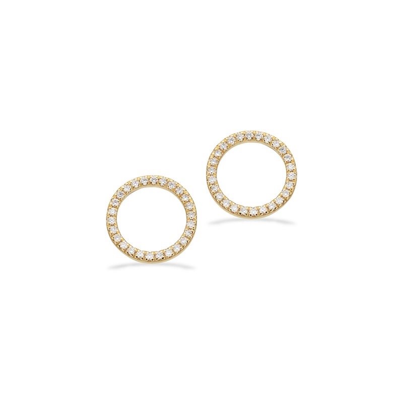 Disse smukke Dazzling øreringe i 14 karat guld er et elegant valg til dig, der ønsker et klassisk smykke med et diskret strejf af luksus. Øreringene har et elegant og klassisk rundt design der sidder smukt på øret. Smykket er prydet med diamanter i hver ørering, som tilsammen udgør 0,18 carat.