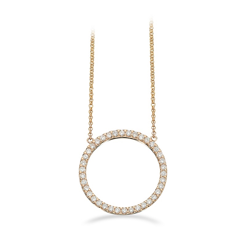 Diamanterne har kvaliteten H-W/SI og udgør tilsammen 0,34 carat. Den åbne cirkelform giver smykket et luftigt og elegant udtryk, mens den fine diamantbesætning tilfører et diskret strejf af luksus. Halskæden kan bæres alene for et enkelt look eller kombineres med andre kæder for et mere personligt udtryk.