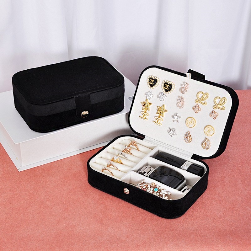 Elegant smykkeskrin i velour - Sort