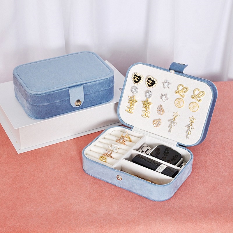 Dette smykkeskrin i baby blå velour er en stilren og praktisk løsning til opbevaring af dine smykker – både derhjemme og når du er på farten. Den bløde overflade beskytter dine smykker mod ridser og holder dem pæne, selv når de opbevares samlet.