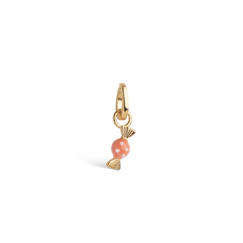 Cute Candy charm i forgyldt sølv fra Enamel Copenhagen er et yndigt lille vedhæng, formet som et stykke slik pakket ind i rosa papir. Den koralfarvede emalje med fine hvide prikker giver charmen et sukkersødt og humoristisk udtryk, der spiller smukt sammen med guldets varme glød. Farverne leder tankerne hen på sommer, sol og glade øjeblikke fyldt med sjove minder.