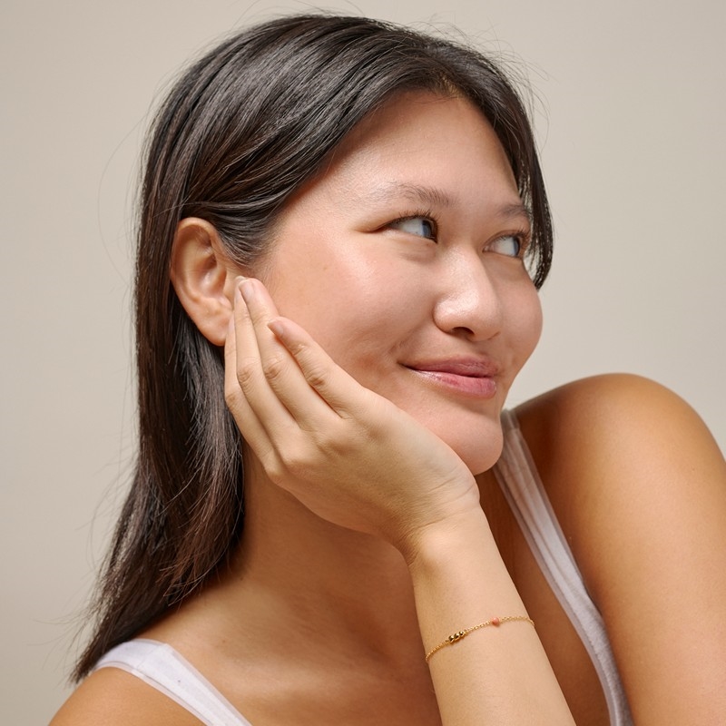 Armbåndet har et let og feminint design, som gør det nemt at style både alene og sammen med andre armbånd. Det tilfører et strejf af farve og personlighed uden at virke dominerende og passer perfekt til både hverdag og sommerens festlige anledninger. Armbåndet måler 15 cm med en forlængelse på 4 cm, så det let kan justeres og sidde behageligt på håndleddet.