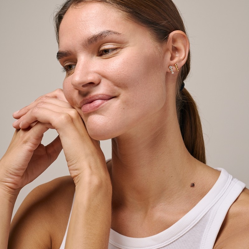 Trinity øreringene er særligt velegnede til at blive kombineret med andre øreringe, hvis du har flere huller i ørerne. De kan styles sammen med hoops, små emaljeøreringe eller perleøreringe for et personligt og moderne look. Deres enkle design gør dem nemme at mikse med andre smykker fra ENAMEL Copenhagens kollektioner.