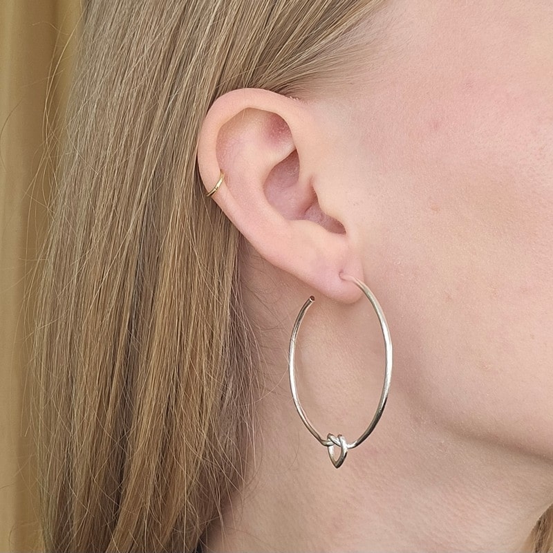 Jane Kønig er kendt for sit kreative og personlige smykkedesign, hvor klassiske former får et moderne twist. Med Big Tied Heart Hoop i sølv får du et smykke, der udstråler både femininitet, styrke og tidløs skønhed – et elegant valg til enhver smykkesamling.