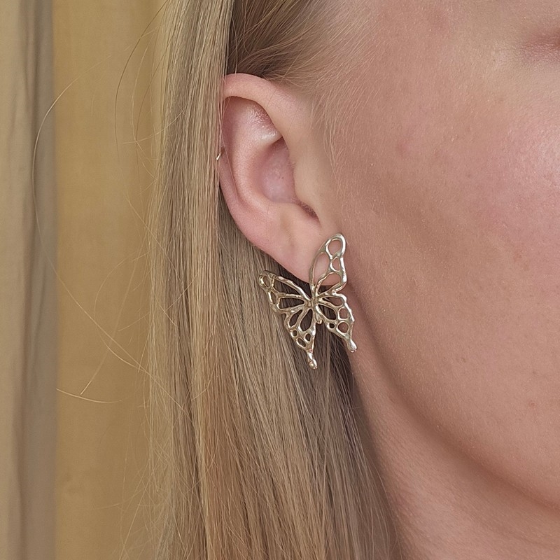 En særlig detalje ved Butterfly øreringen er, at den findes i både en højrevendt og en venstrevendt udgave. Øreringen sælges enkeltvis, så du selv kan vælge, om du vil bære én alene som et unikt statement, eller købe et par og lade sommerfuglene spejle hinanden. Det giver dig fleksibilitet til at lege med stilen og tilpasse den til både hverdag og særlige anledninger.