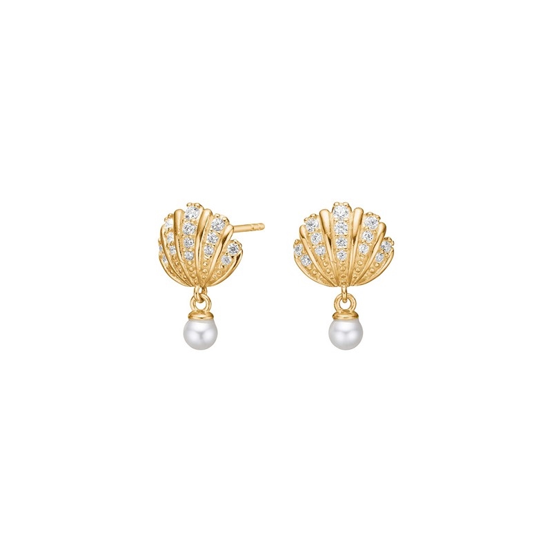 Kombinationen af de funklende zirkonia, den organiske skalform og den fine perle giver øreringene et let og feminint udtryk, der passer perfekt til både hverdag, særlige anledninger og ikke mindst sommerens mange begivenheder.
