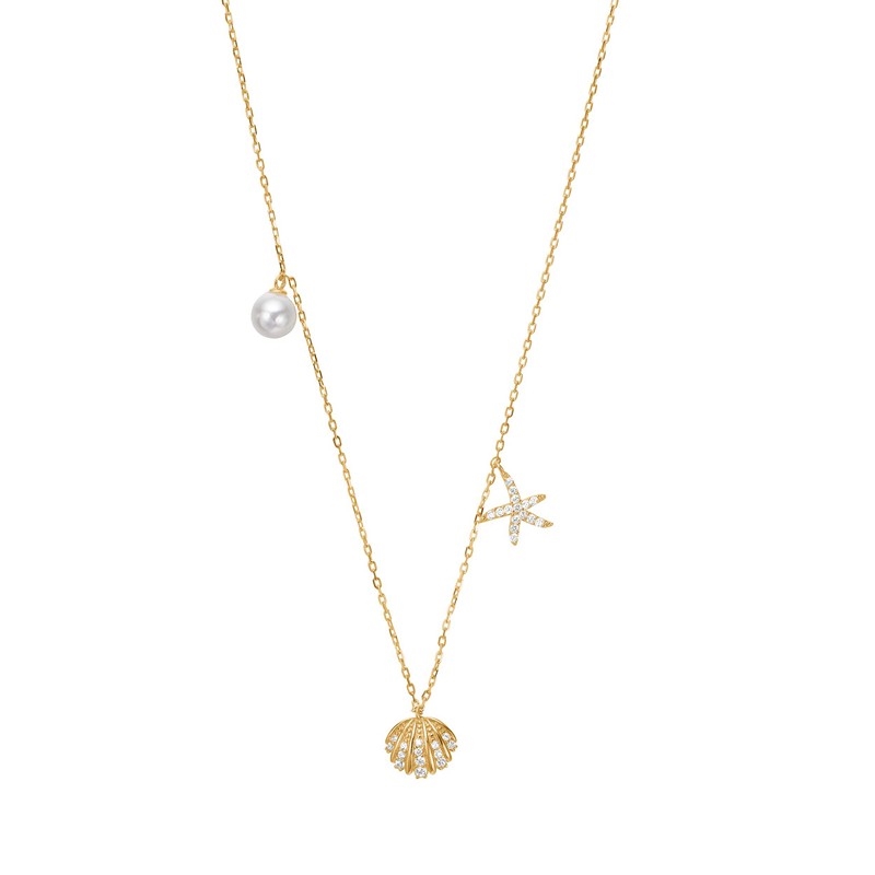 SELINANOR halskæden fra Joanli Nor er et let og sommerligt smykke, der emmer af varme dage, strandstemning og fine detaljer. Halskæden er fremstillet i 925 sterlingsølv, forgyldt med 18 karat guld, og består af flere små vedhæng, som tilsammen skaber et legende og feminint udtryk. Det lille muslingeskalsformede vedhæng giver klare associationer til hav og strand, mens de funklende zirkonia tilfører et blødt glimt, der fanger solens lys.