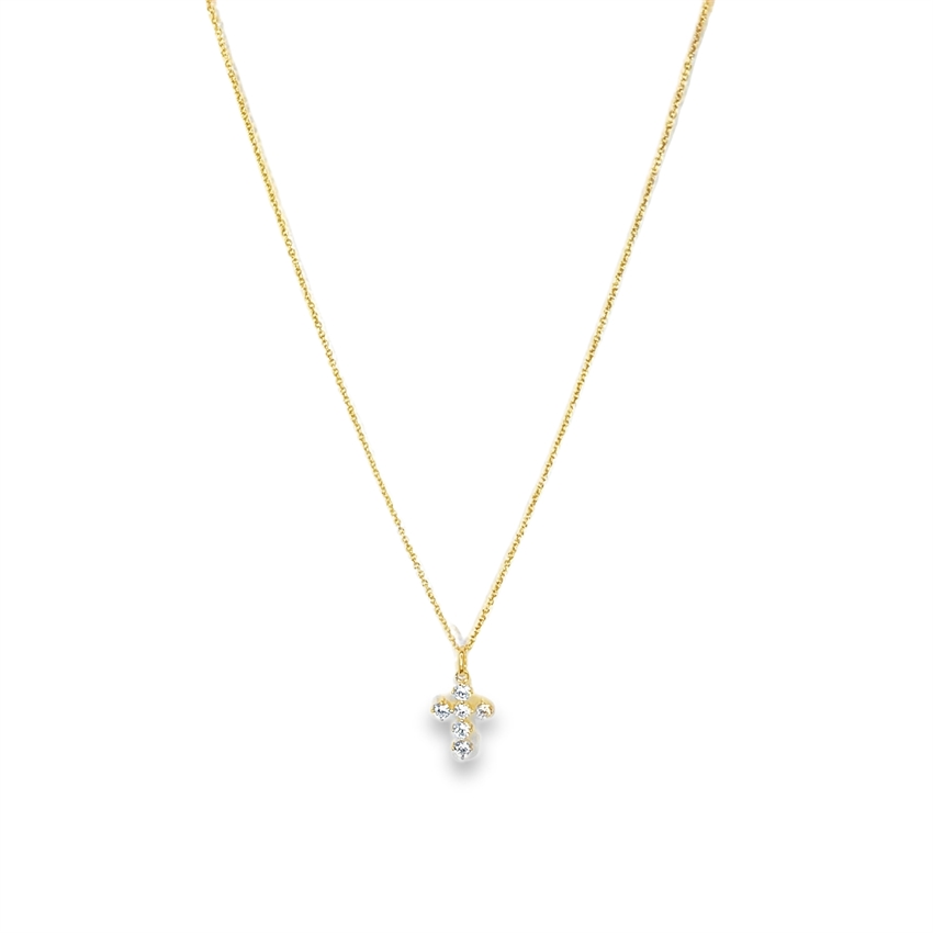 Kors vedhæng i 8kt guld med zirkonia og forgyldt sølv kæde