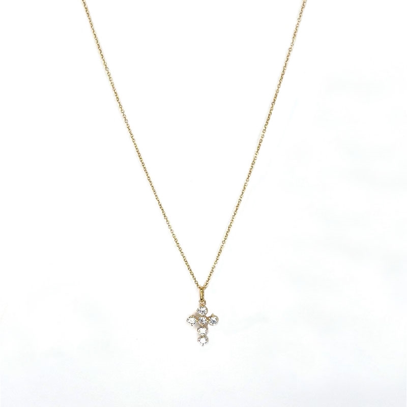 Kors vedhæng i 8kt guld med zirkonia og forgyldt sølv kæde 17 mm