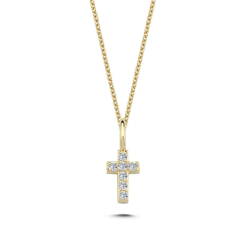 Kors vedhæng i 14 kt guld med i alt 0,035 carat. 6,5 mmKors vedhæng i 14 kt guld med i alt 0,035 carat. 6,5 mm