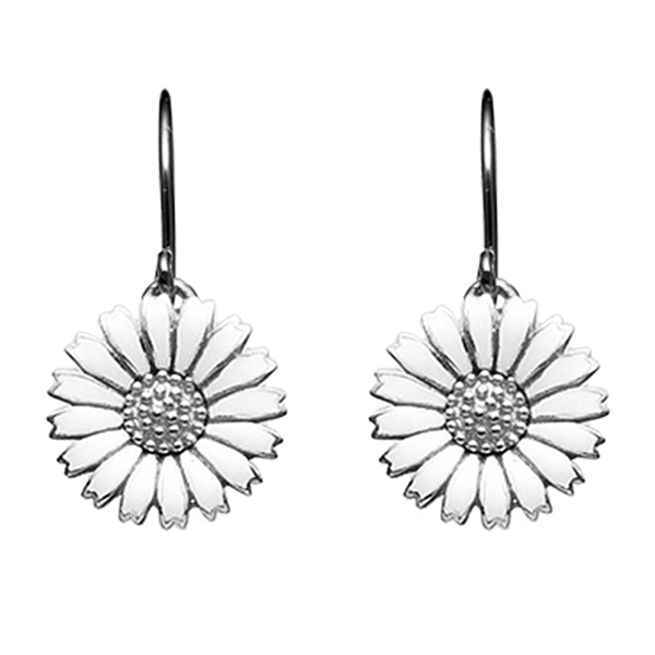 Kranz & Ziegler - Marguerit ørehængere i sølv m. hvid emalje