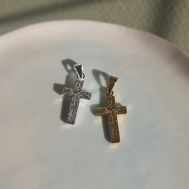 Dette kors vedhæng fra Lund Copenhagen er udført i 24 kt. forgyldt sølv og har et klassisk, men samtidig unikt udtryk. Vedhænget måler 20 x 12 mm og er designet med en let riflet overflade, der har en diskret træstruktur. Den særlige overfladebehandling giver korset et levende og elegant look, der skiller sig ud fra de helt glatte modeller, og som tilfører smykket et strejf af karakter og dybde.