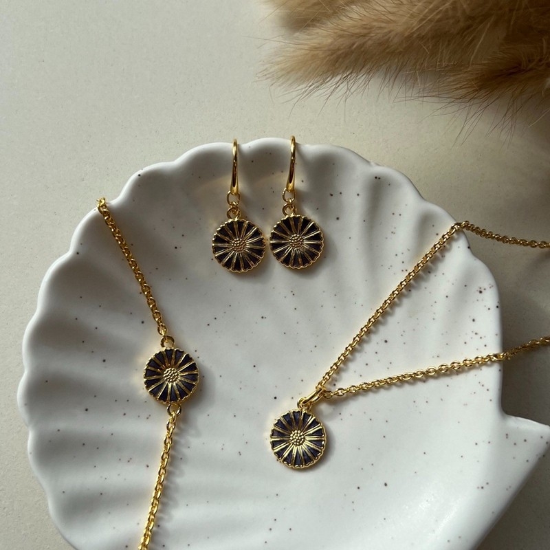 Det kan bæres alene som et elegant blikfang, men også kombineres med matchende margueritøreringe, halskæde og ring for et fuldendt udtryk. Den lilla blomst skaber en smuk kontrast til det gyldne metal, hvilket giver armbåndet et feminint og moderne udtryk, der kan bruges både til hverdag og fest.