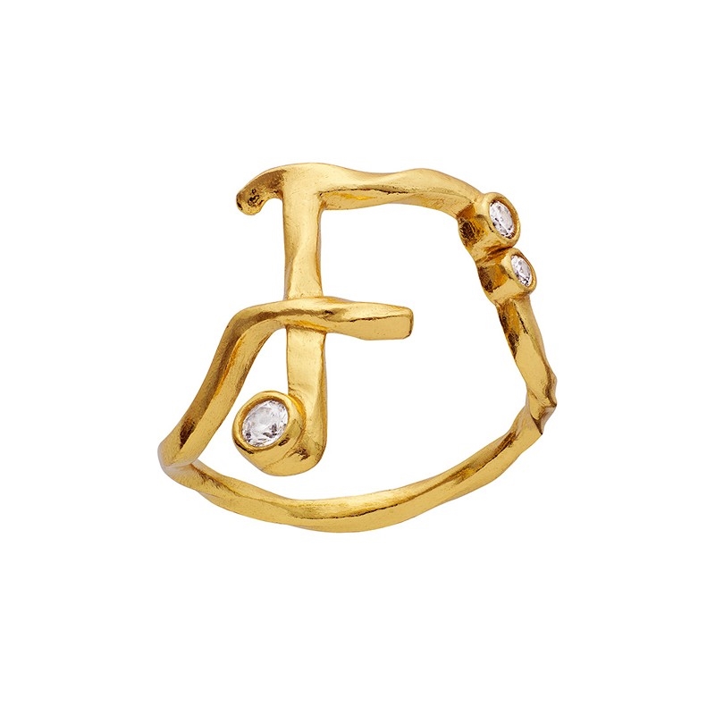 Maanesten - Alfabet ring i forgyldt sølv - F