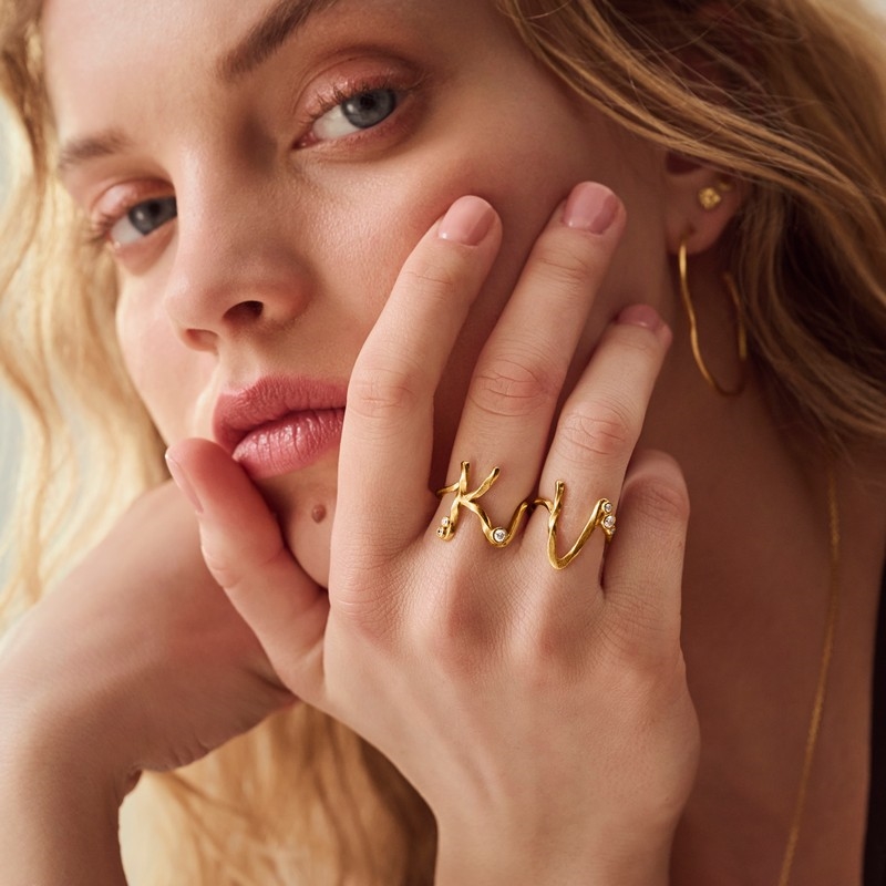 Ringen kan bæres alene, hvor bogstavet får lov at stå tydeligt frem, men den fungerer også rigtig godt sammen med andre ringe. Du kan med fordel kombinere flere bogstaver og skabe din egen personlige sammensætning, hvor hvert smykke fortæller sin egen historie.