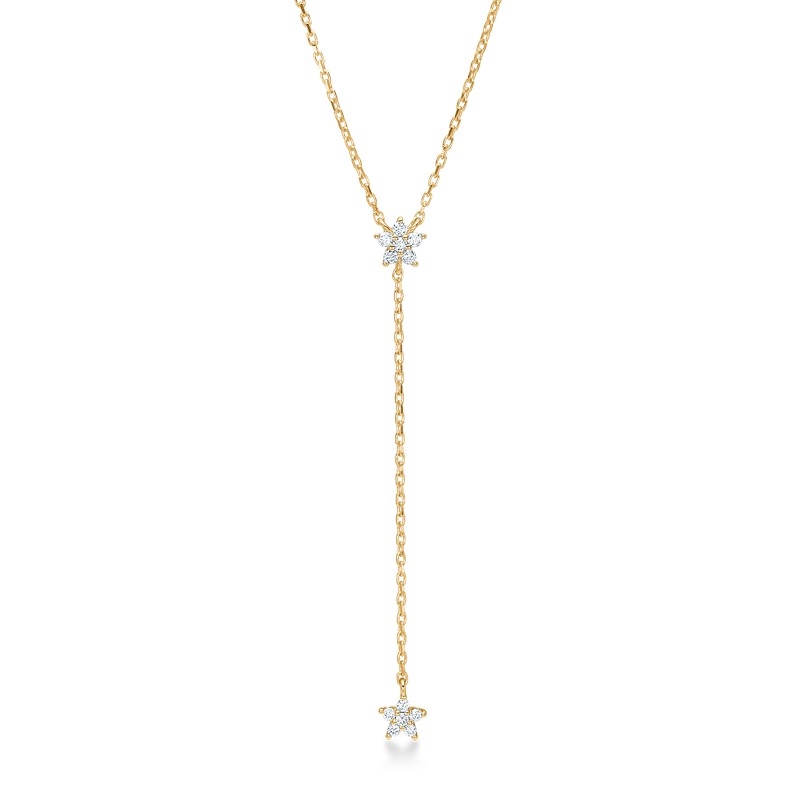 Halskæden er prydet med i alt 0,12 carat brillanter i kvaliteten Wesselton/SI. De funklende diamanter tilfører smykket et diskret, men eksklusivt spil og fremhæver stjernemotivet på en elegant måde. Kombinationen af de klare brillanter og det varme 14 karat guld skaber et balanceret udtryk, der både føles klassisk og moderne.