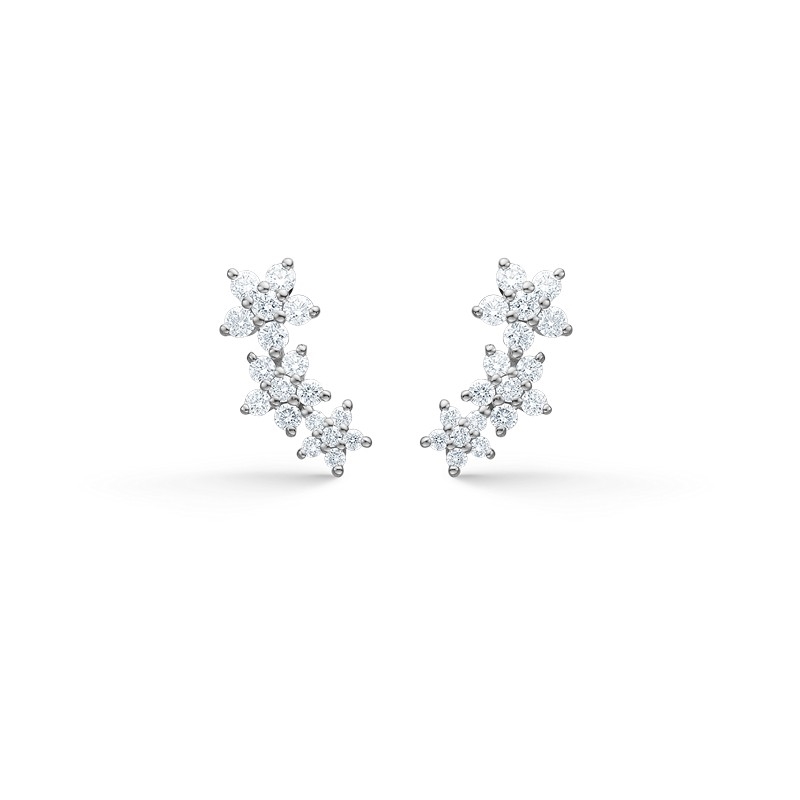 Øreringene måler 12,5 mm og er designet til at følge ørets naturlige form, hvilket giver et flot og iøjnefaldende udtryk uden at virke tungt. Designet er opbygget omkring tre femtakkede stjerner på hver ørering. Hver stjerne er smukt indrammet af klare zirkonia, som skaber et levende og funklende spil i lyset.