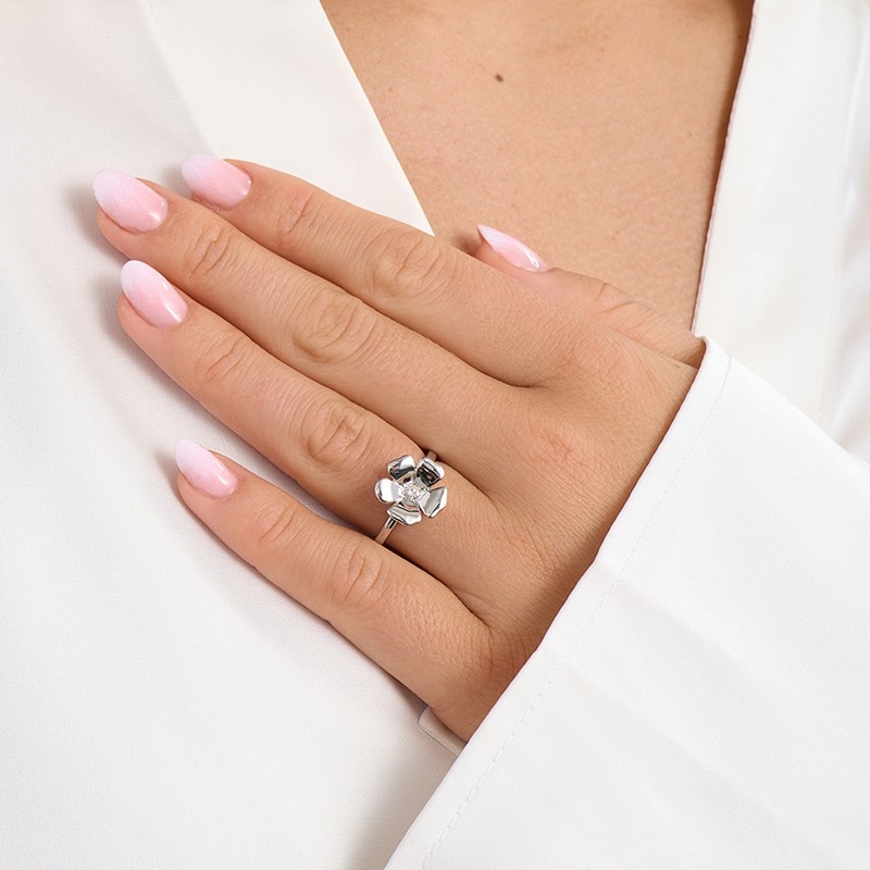Fleur ringen i sterlingsølv fra Mads Z er en elegant og karakterfuld ring med et feminint, men samtidig stærkt udtryk. Designet er enkelt og rent, hvor blomsten troner smukt på fingeren og fungerer som ringens naturlige midtpunkt. Formen giver ringen et markant, men harmonisk udtryk, der balancerer det bløde og det kraftfulde.