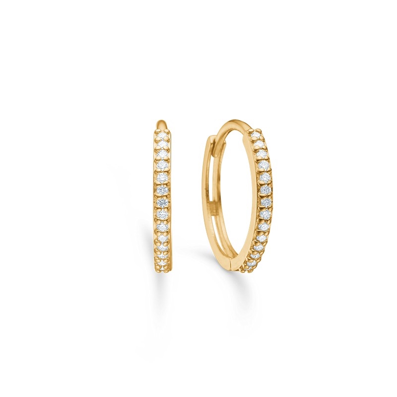 Designet er elegant og velafbalanceret, hvor brillanternes funklende detaljer smukt fremhæves af det varme 14 kt guld. Kombinationen skaber et klassisk look, der aldrig går af mode, og som nemt kan styles alene eller sammen med andre guldsmykker.