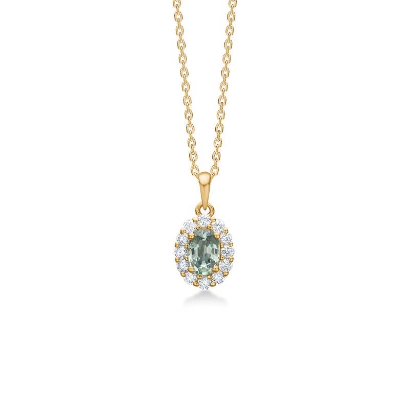 Pastello Elegante halskæde i 14 kt guld m safir og 0,25ct.Mads Z Pastello Elegante halskæde i 14 kt guld med grøn safir og 0,025 ct brillanter båret på model