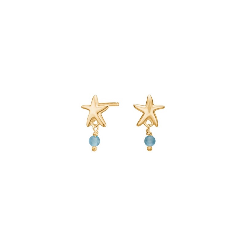 Under hver søstjerne hænger en lille lyseblå perle, som tilfører et diskret farvespil og understreger det maritime og sommerlige udtryk. Et fint og legende smykke, der passer perfekt til både hverdag, ferie og lette sommeroutfits.