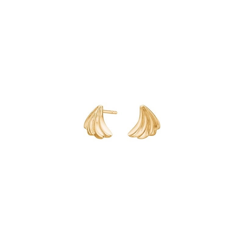 Designet er inspireret af bløde palmeblade, hvor de fine, buede linjer ligger lag på lag og skaber et smukt spil i lyset. Den varme, gyldne overflade fremhæver de organiske former og giver ørestikkerne et feminint og eksklusivt look med et strejf af sommerlig lethed.