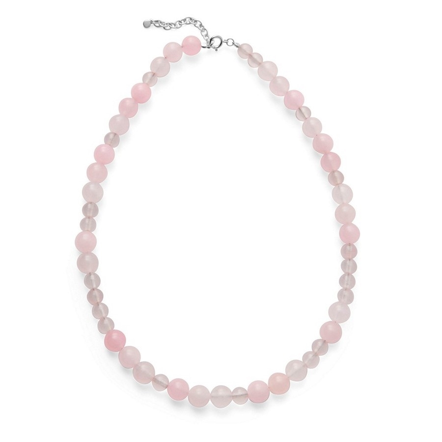 Sølvets kølige glans skaber en smuk kontrast til rosenkvartsens bløde farver og giver halskæden et let og afbalanceret look. Halskæden kan justeres i længden fra 38 til 42 cm, så den nemt kan tilpasses og bæres tæt på halsen eller lidt længere nede alt efter stil og outfit. Den justerbare længde gør den velegnet til både hverdag og pænere anledninger.
