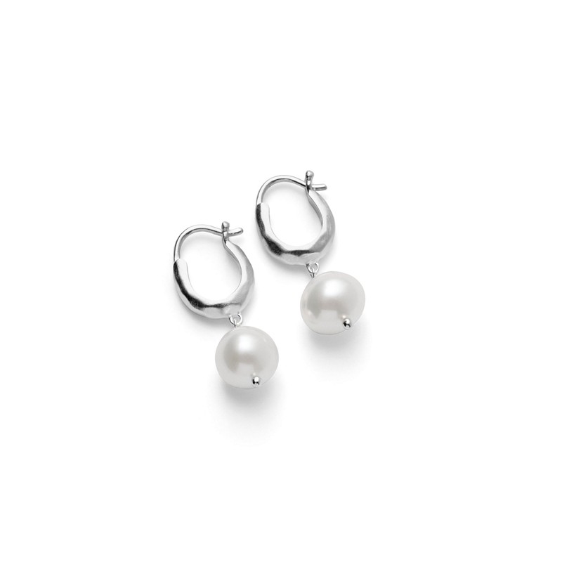 Perlen bevæger sig frit under hoopen og skaber et levende og feminint look, der ændrer sig, når du bevæger dig. Den bløde glans fra perlen står flot til det kølige sølv og giver en fin kontrast, som gør øreringene både klassiske og moderne på samme tid.