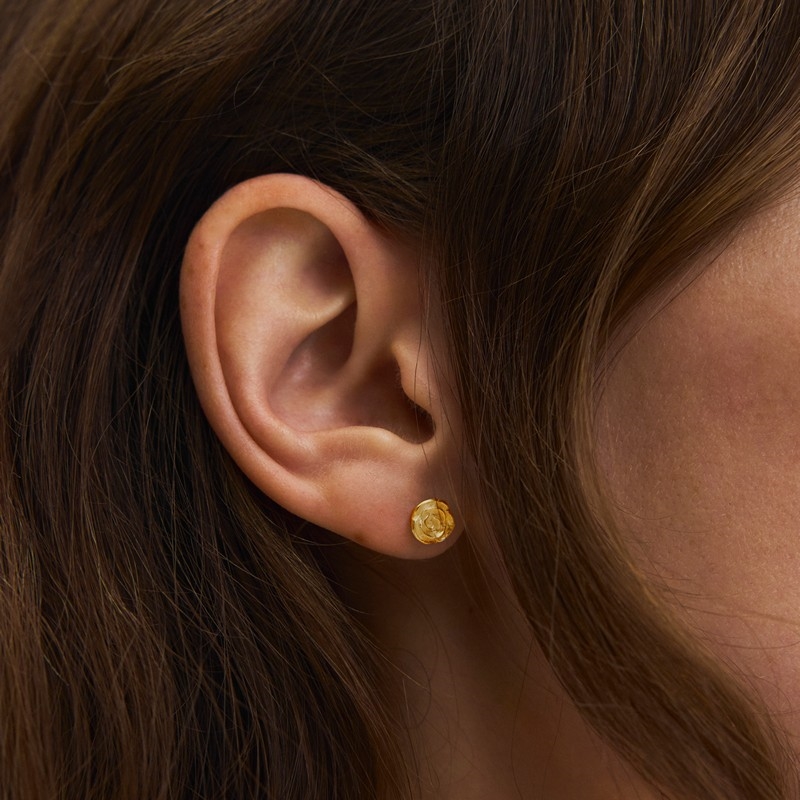 Small Rose øreringe i forgyldt sølv af Pernille CorydonSmall Rose øreringe i forgyldt sølv af Pernille Corydon på modelSmall Rose øreringe af Pernille Corydon