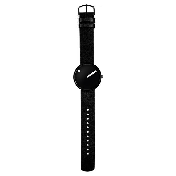 Et klassisk ur fra Picto med en sort urskive og sort læder rem. Den klassiske Picto urskive har her de grafiske hvide visere, der indikerer tiden. Remmen er lavet af læder og måler 20 mm i bredden og på bagsiden af remmen finder du Picot logoet.