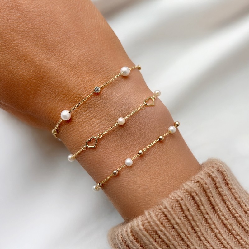 Den varme glans fra 8 karat guldet fremhæver perlernes naturlige skønhed og understreger armbåndets enkle og tidløse design. Det er et oplagt valg til dig, der ønsker et smykke, som kan bruges igen og igen, både alene for et elegant look eller sammen med andre guldarmbånd og et klassisk ur.