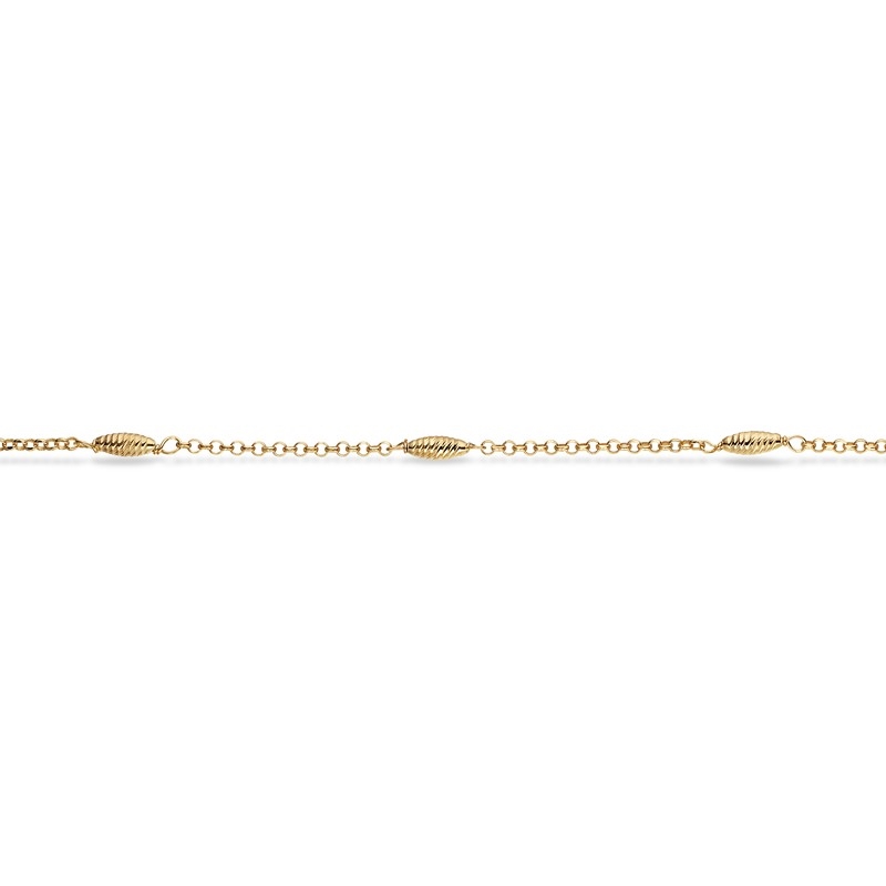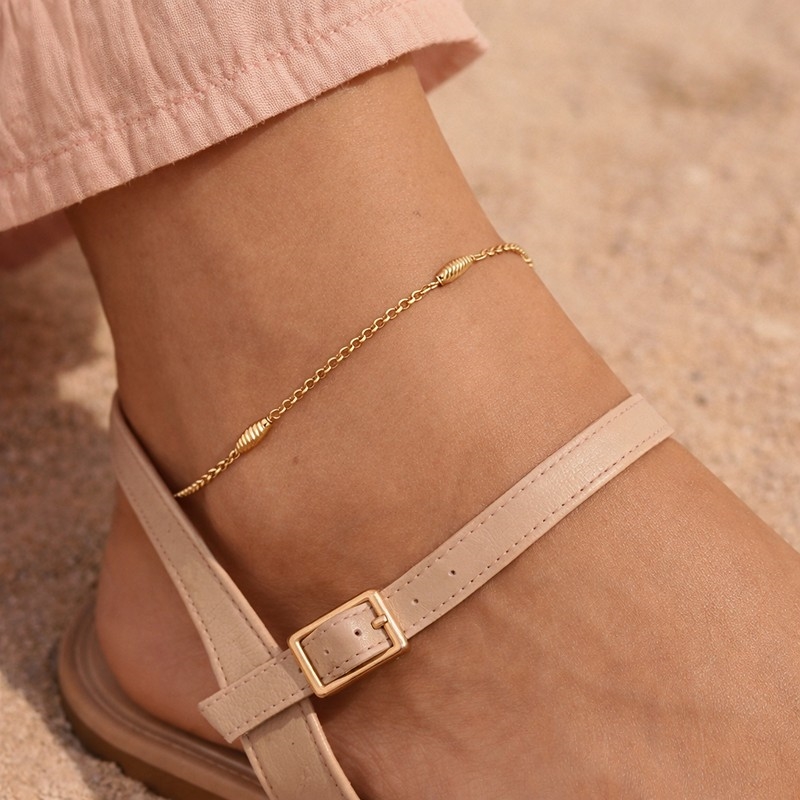 Ankelkæden sidder elegant om anklen og er perfekt til sommerens kjoler, sandaler og bare fødder, men kan også bruges som en stilfuld detalje til hverdag. Den varme forgyldning giver et blødt og klassisk udtryk, som er nemt at kombinere med andre guldfarvede smykker.