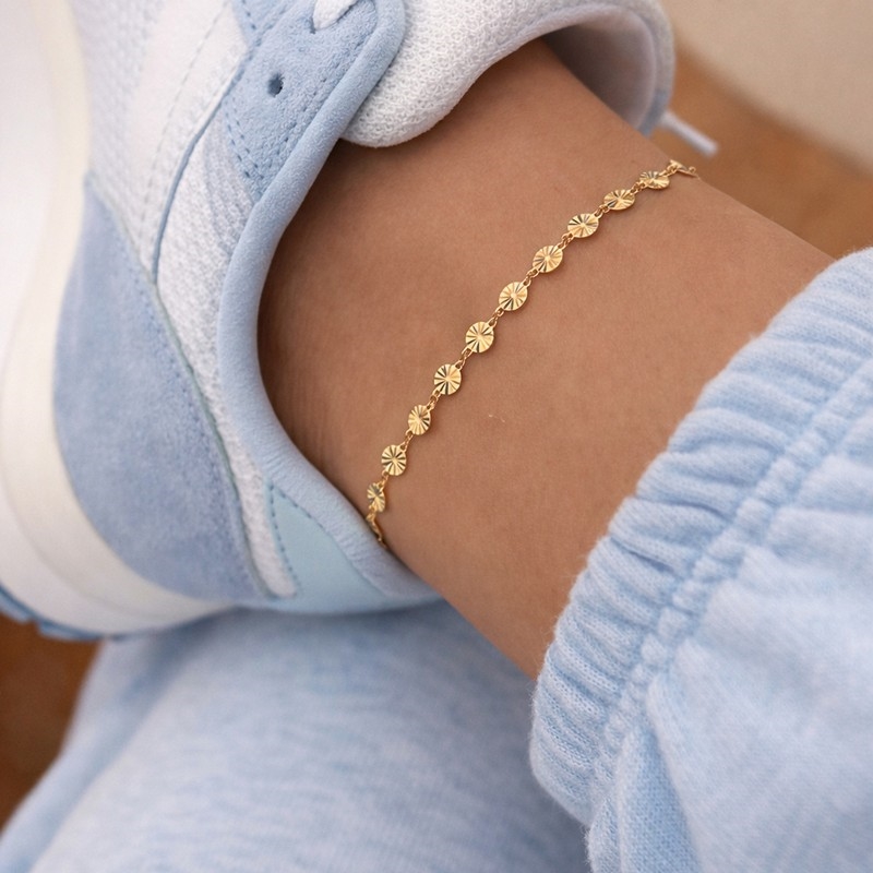 Scrouples - Ankelkæde plisserede poletter forgyldt sølvScrouples - Ankelkæde plisserede poletter forgyldt sølv
