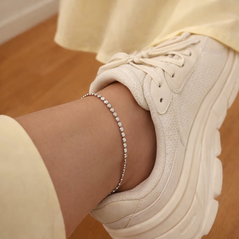 Ankelkæden sidder smukt om anklen og passer perfekt til sommerens kjoler, sandaler og bare fødder, men fungerer også som en enkel detalje til hverdagsbrug. Det rhodinerede sølv giver en flot, blank finish og beskytter samtidig smykket mod misfarvning.